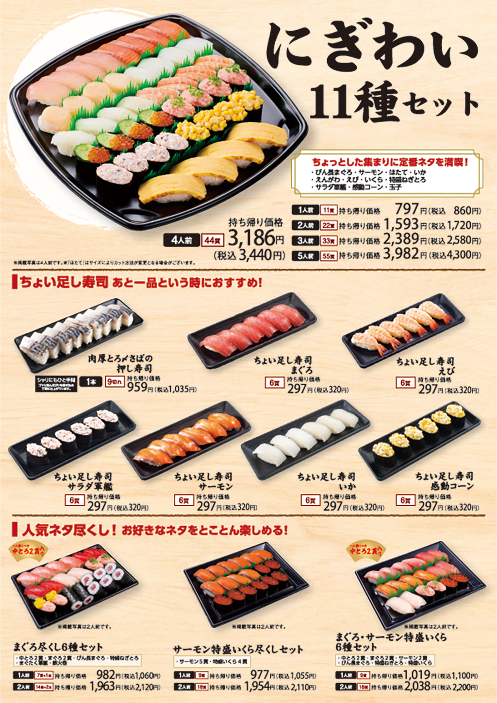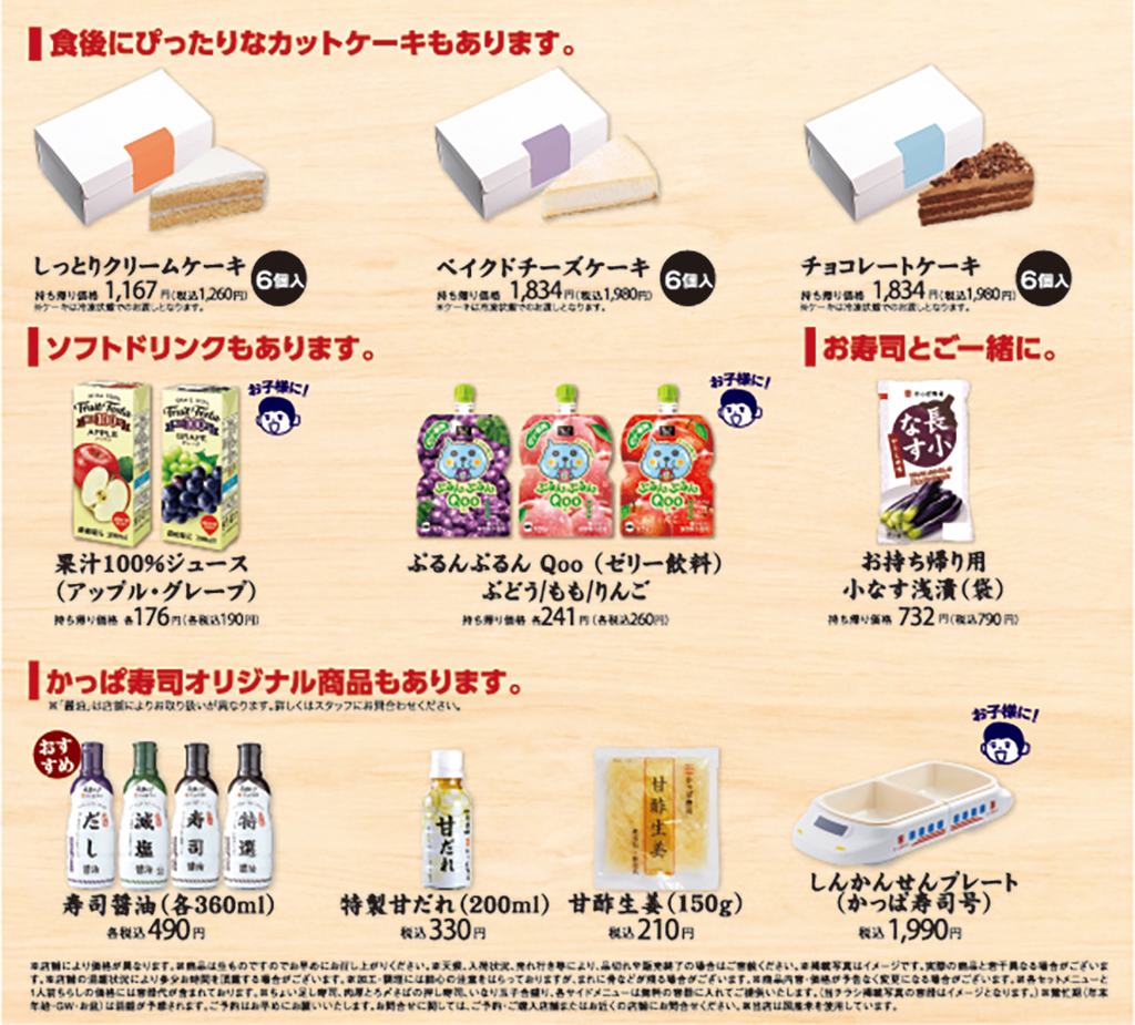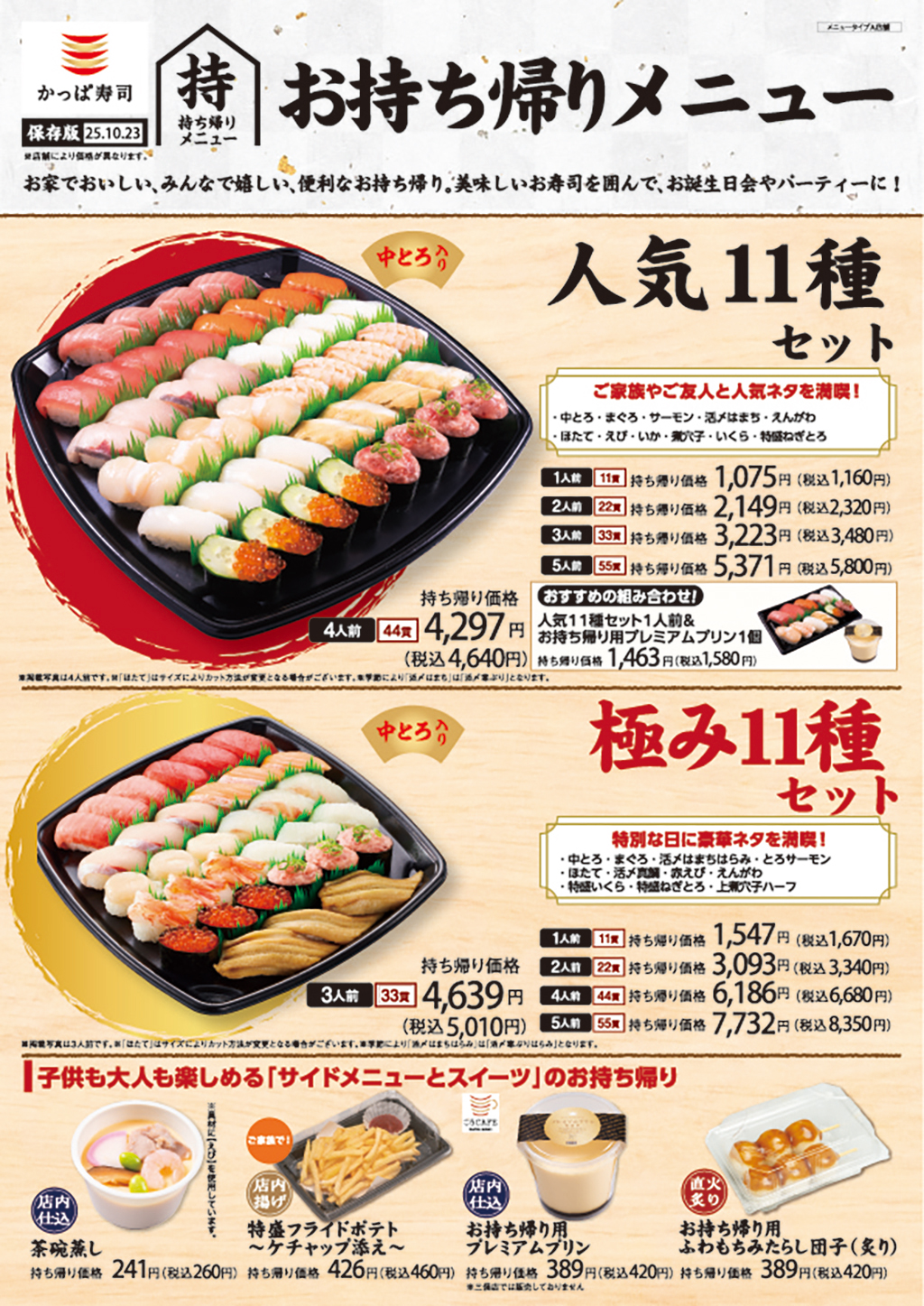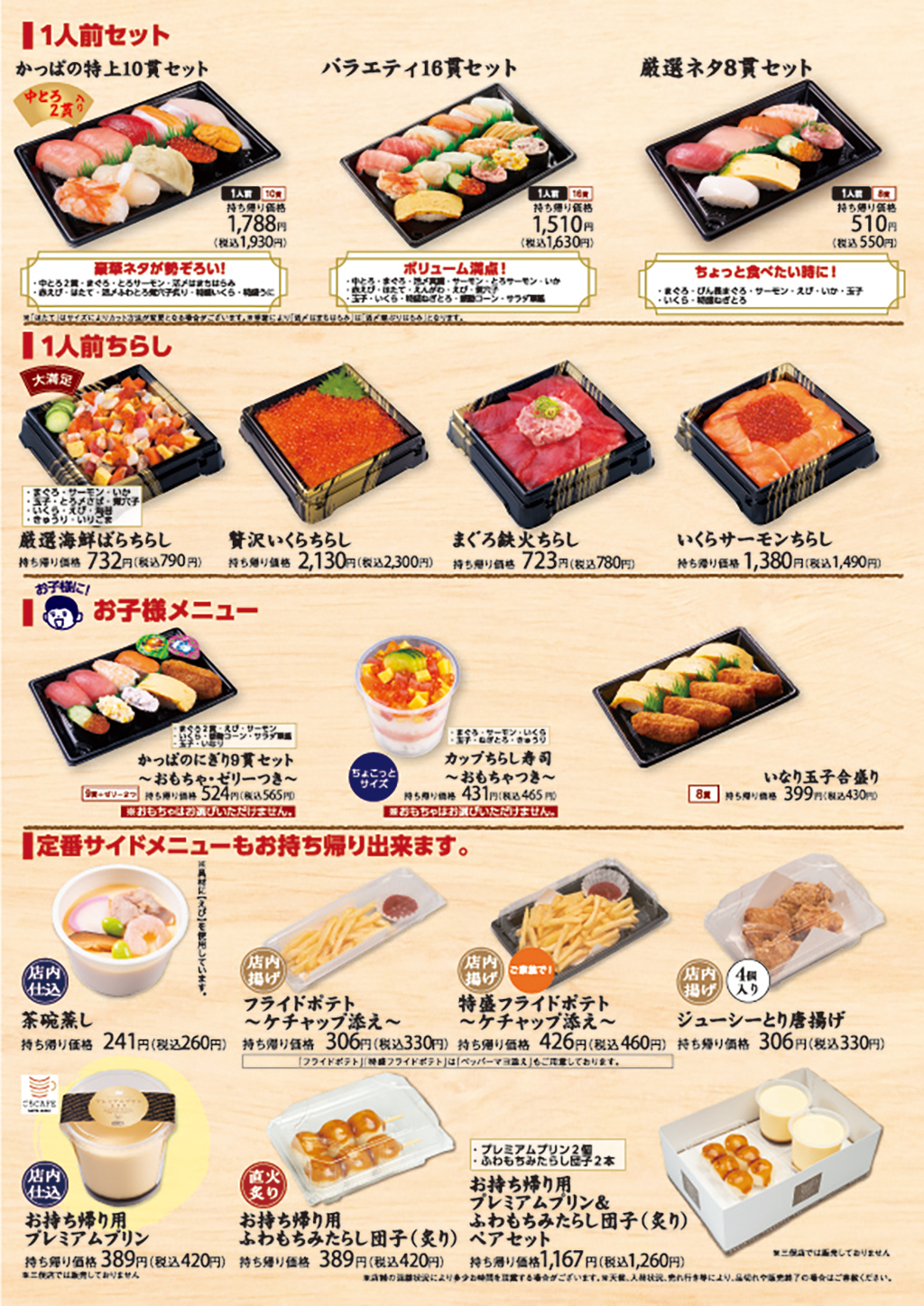 かっぱ寿司お持ち帰りメニュー(メニュータイプA店舗)