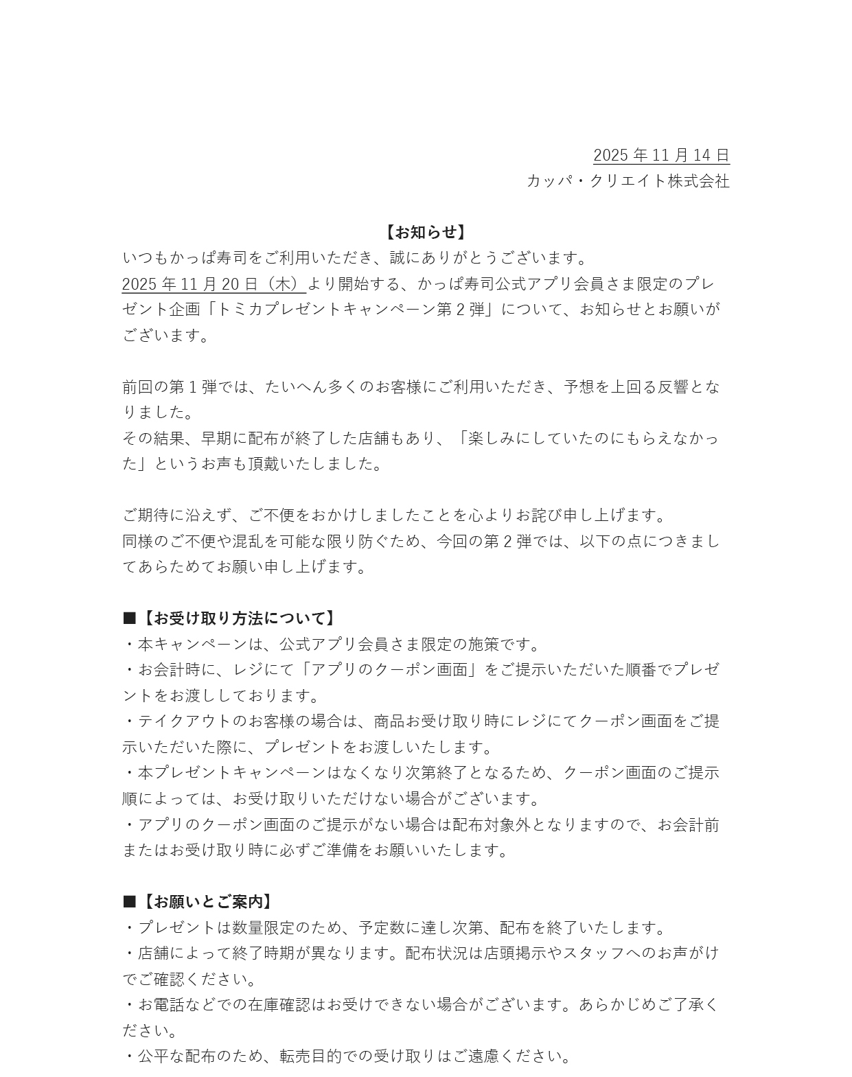 【お知らせ】アプリ会員限定プレゼント「トミカプレゼントキャンペーン第2弾」について