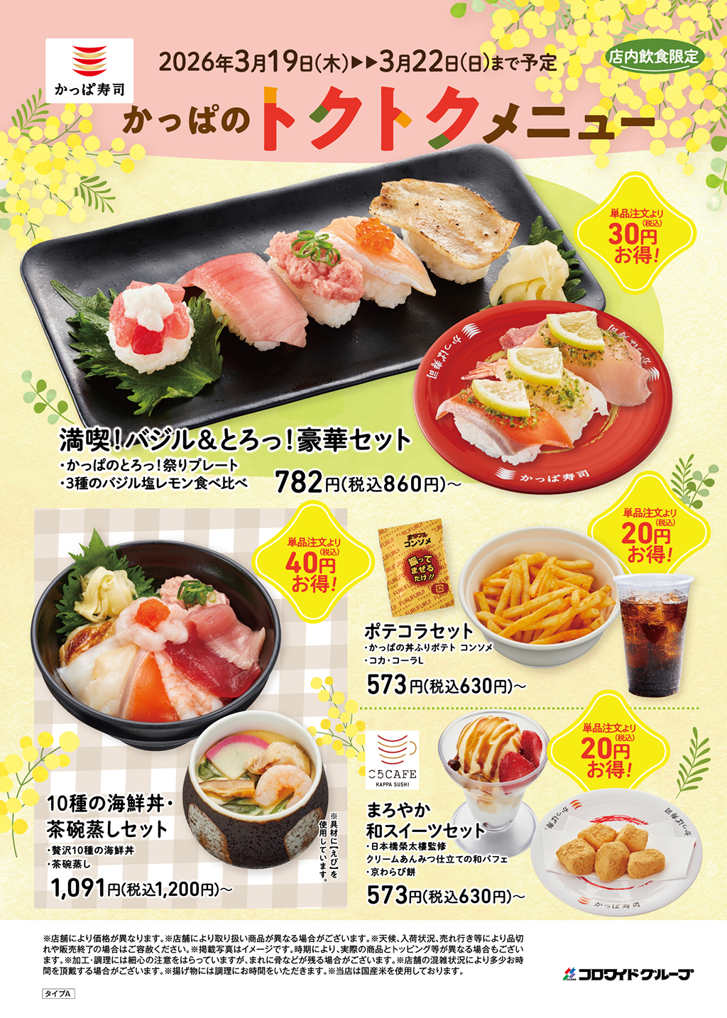 4日間限定のお得なセットメニュー!かっぱのトクトクメニュー