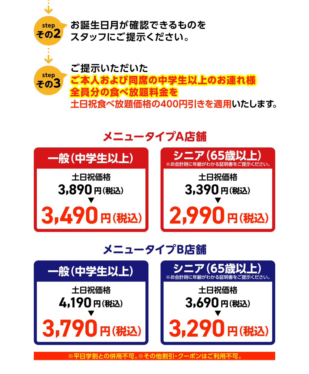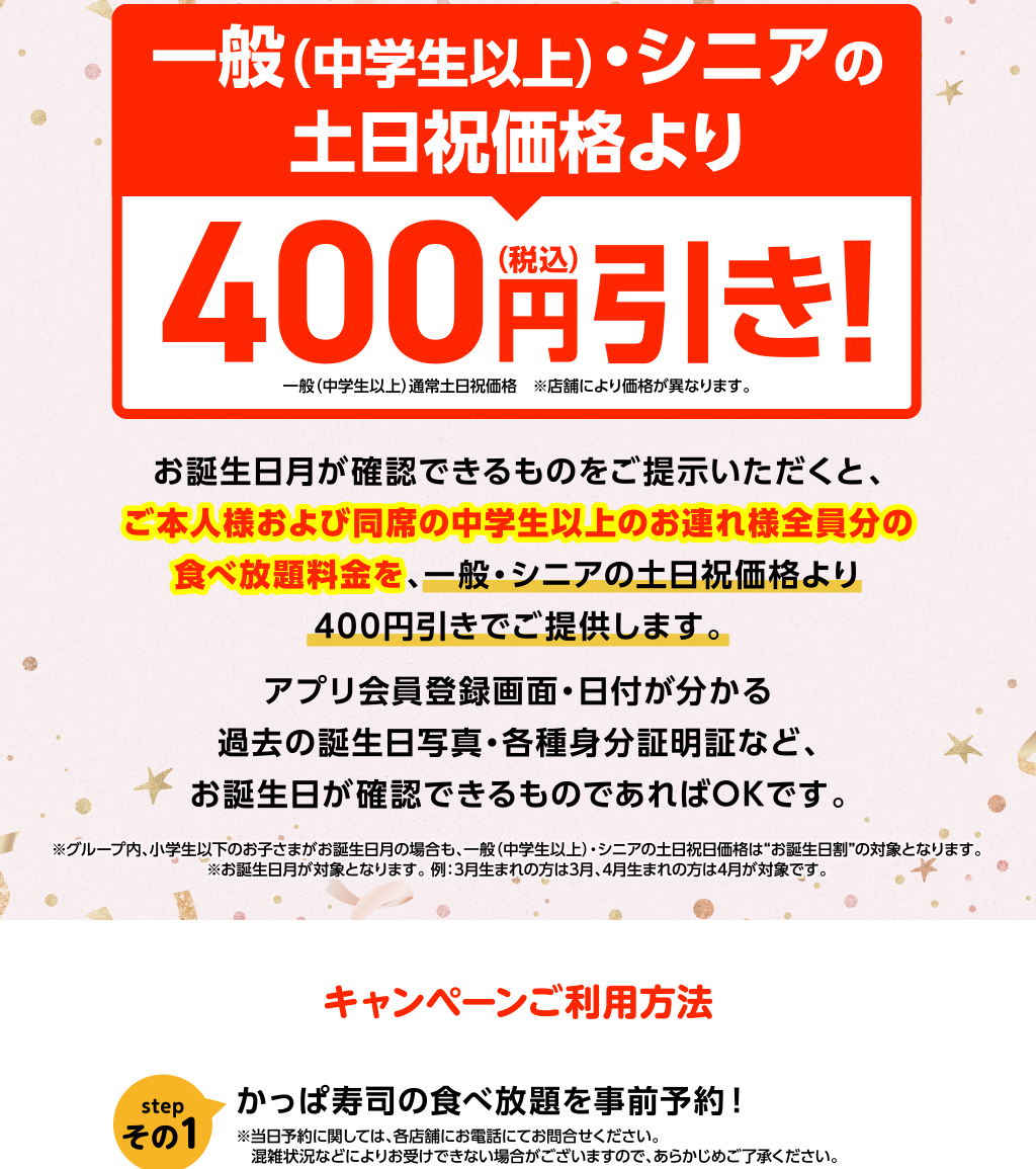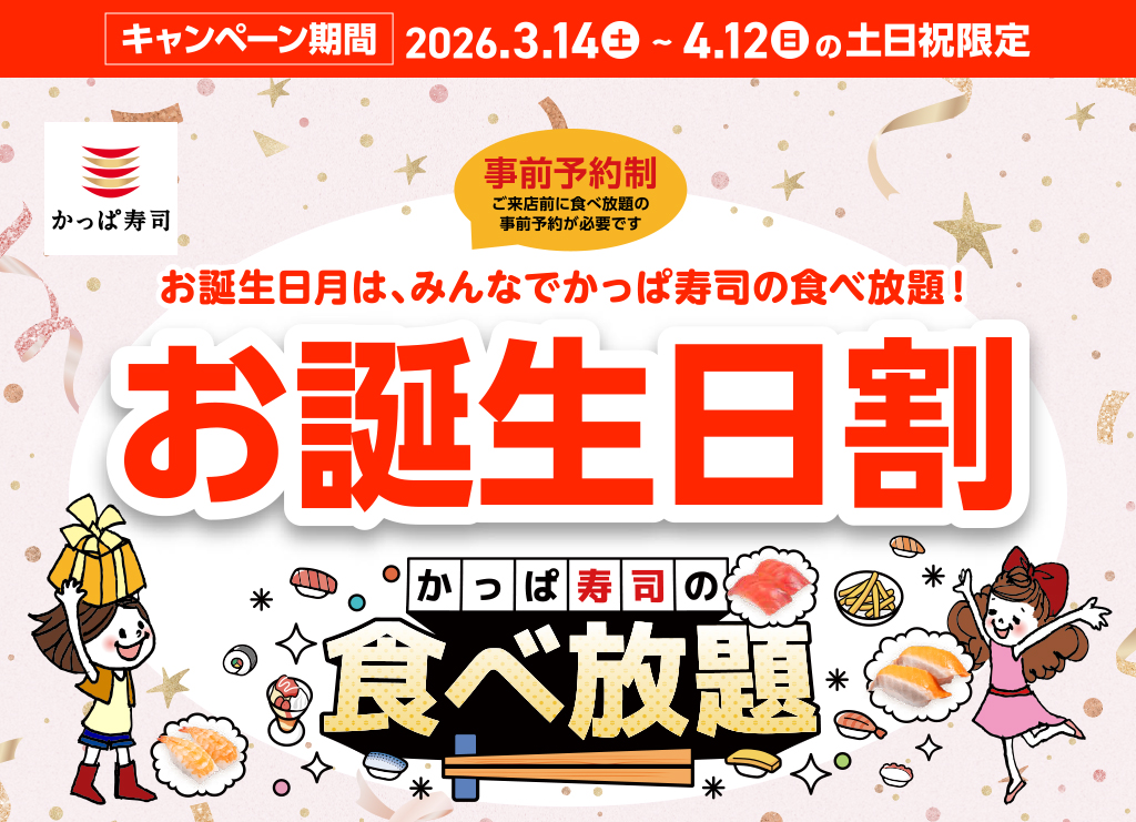 お誕生日割|お誕生日月なら土日祝の食べ放題がお得!