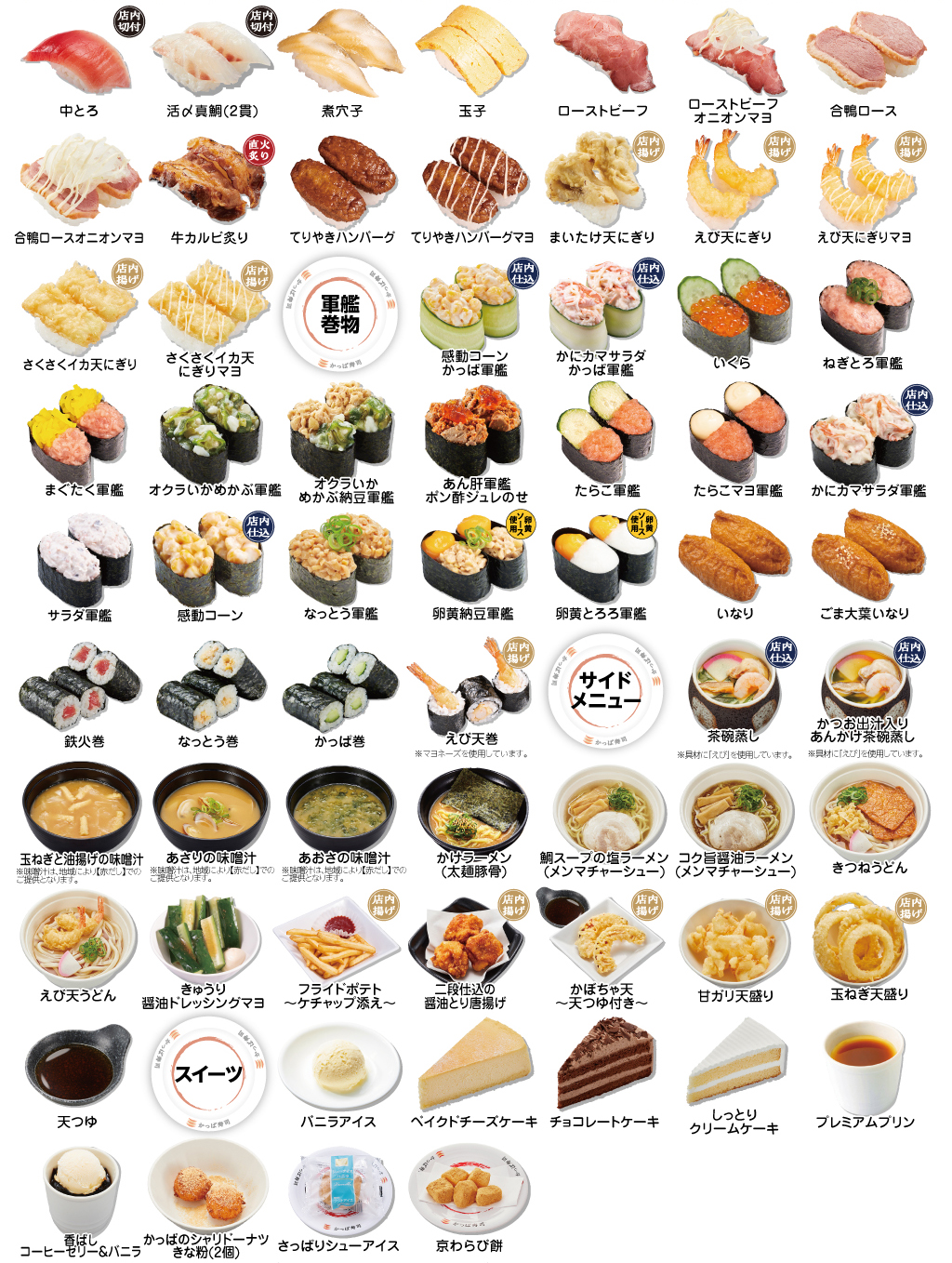 ※麺類・揚げ物はお早めにご注文ください。(調理にお時間をいただいております。)※天候、入荷状況、売れ行き等により品切れの場合はご容赦ください。※掲載写真はイメージです。時期により、実際の商品とトッピング等が異なる場合もございます。※加工・調理には細心の注意をはらっていますが、まれに骨などが残る場合がございます。※店舗の混雑状況等により多少お時間を頂戴する場合がございます。※うどんとラーメンは同じ釜で茹でています。※当店は国産米を使用しています。