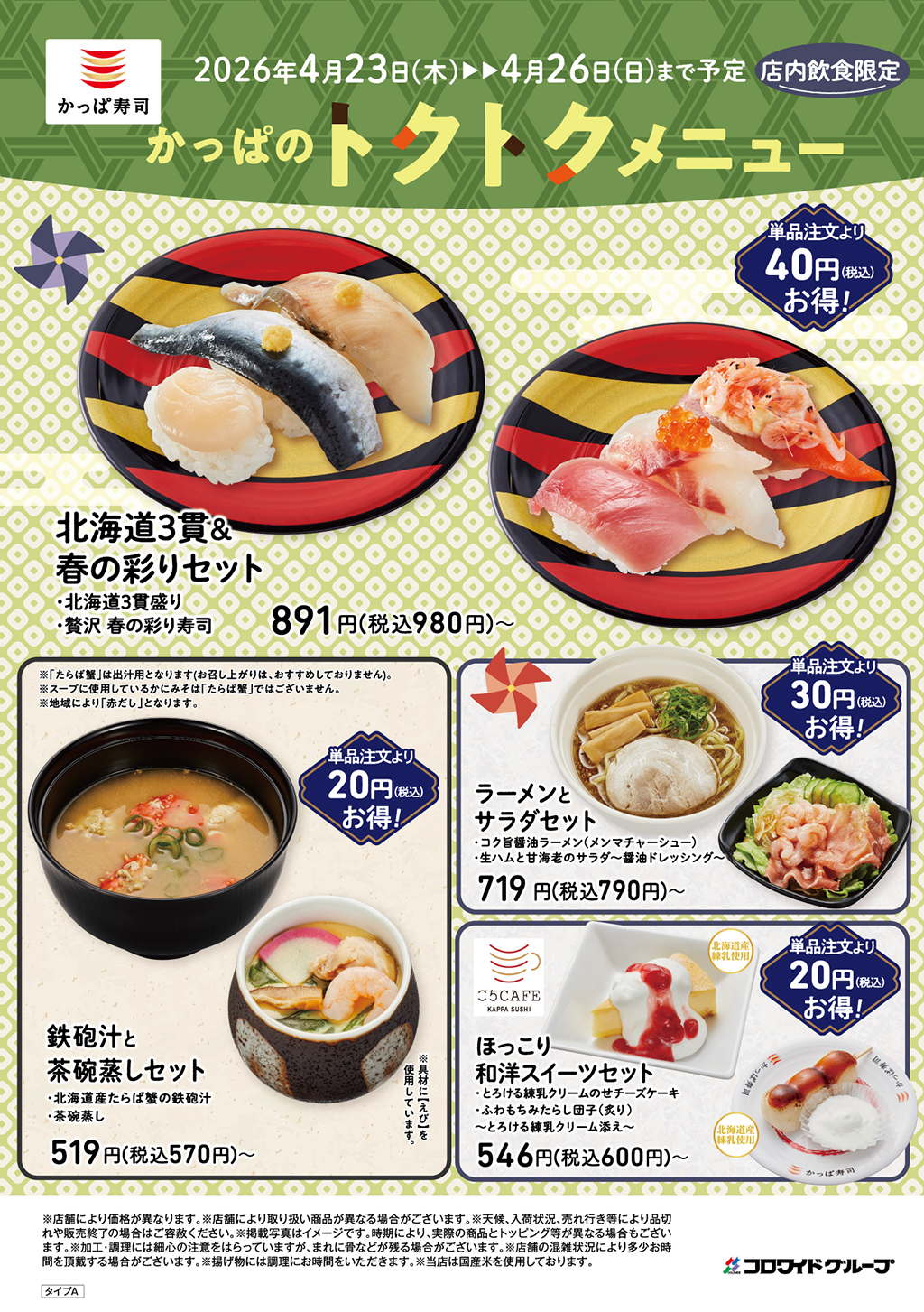 4日間限定のお得なセットメニュー!かっぱのトクトクメニュー