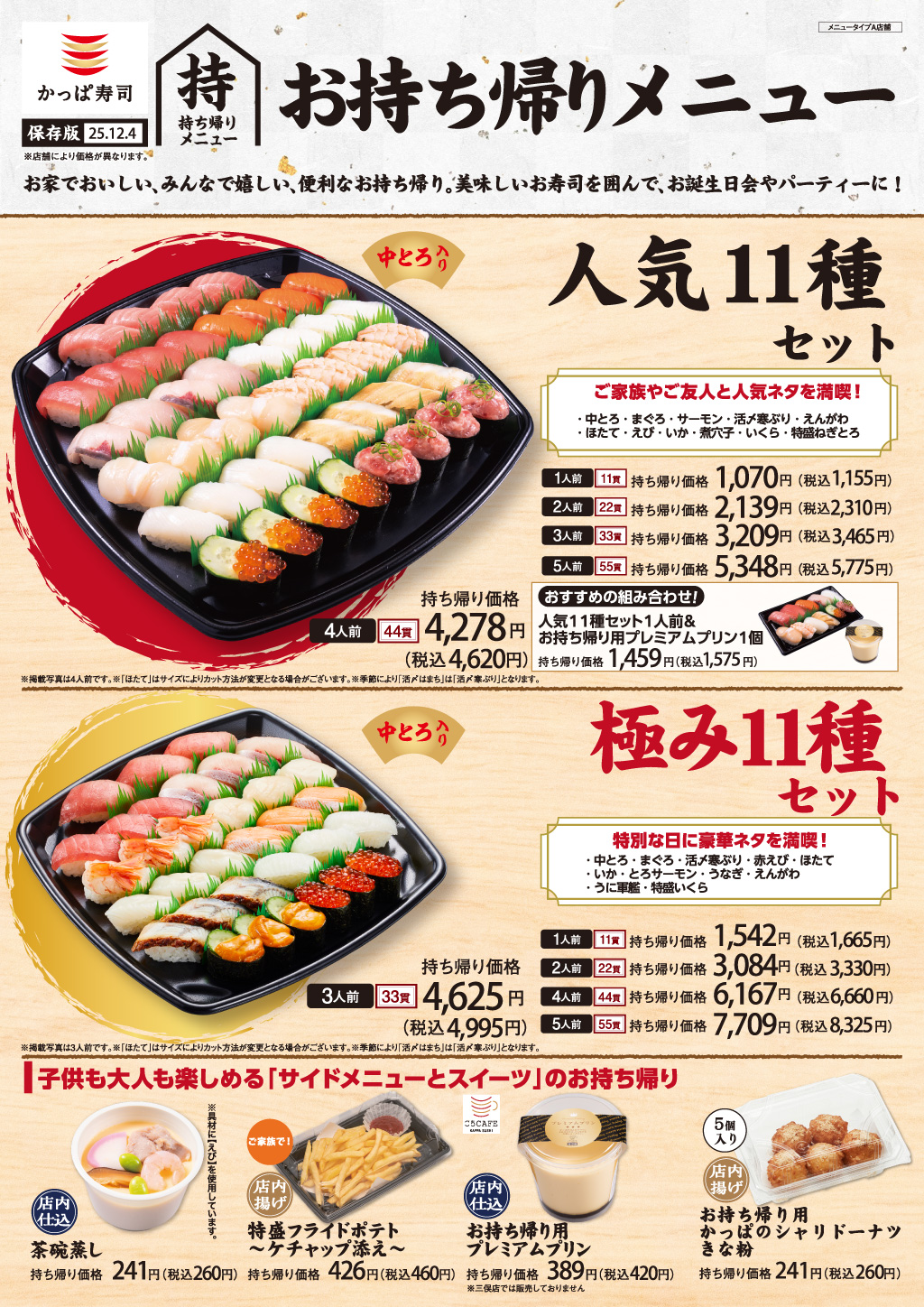 かっぱ寿司お持ち帰りメニュー(メニュータイプA店舗)